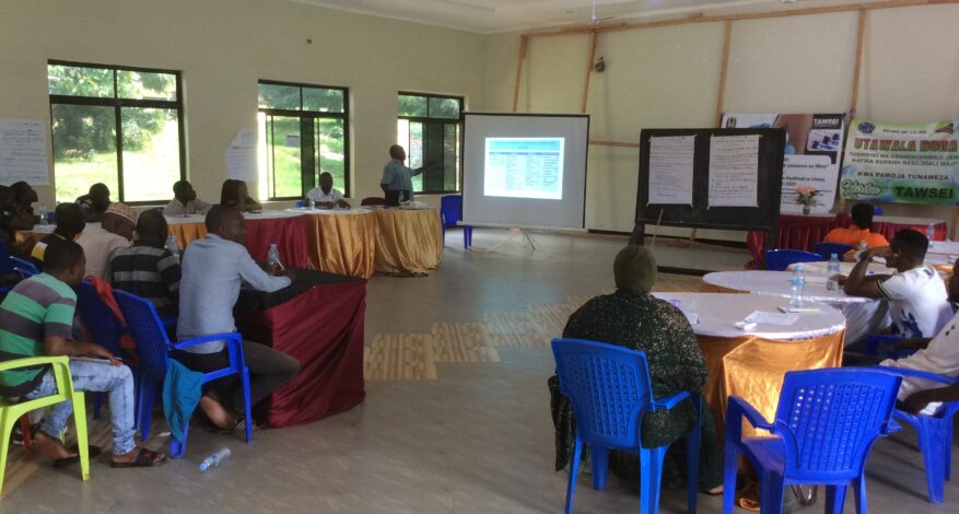 Menejimenti ya Tawsei, Viongozi wa Serikali za vijiji, Viongozi wa dini pamoja na Viongozi wa vituo vya bodaboda wakiwa kwenye mafunzo ya kujengewa uwezo wa kufanya ushawishi na uhamasishaji ili kuchochea maendeleo ya miradi mbalimbali inayoibuliwa katika jamii.